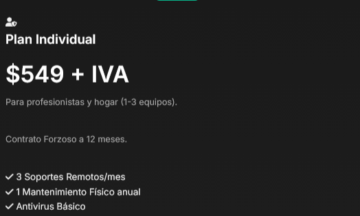 La Póliza Cuida-Fix TI (Plan Individual) es como tener un seguro de gastos médicos para tu computadora. Por una cuota mensual fija, tienes a TERAFIX cuidando tu espalda tecnológica todo el año, sin sorpresas ni facturas inesperadas.